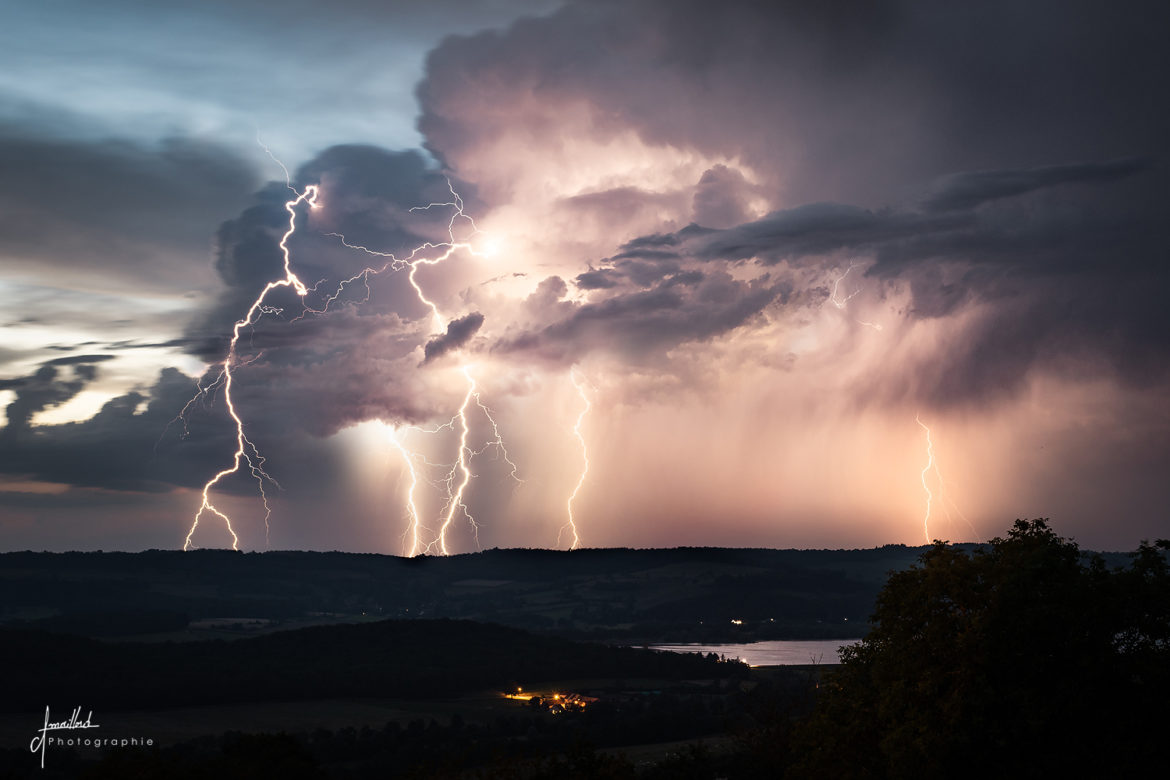 Loin des orages les plus violents, je cherche la foudre esthétique sous les cellules isolées. La Bourgogne est l’un de mes terrains de jeux favoris et cette nuit de fin juillet se révèlera être aussi mouvementée que généreuse pour le plaisir des yeux.