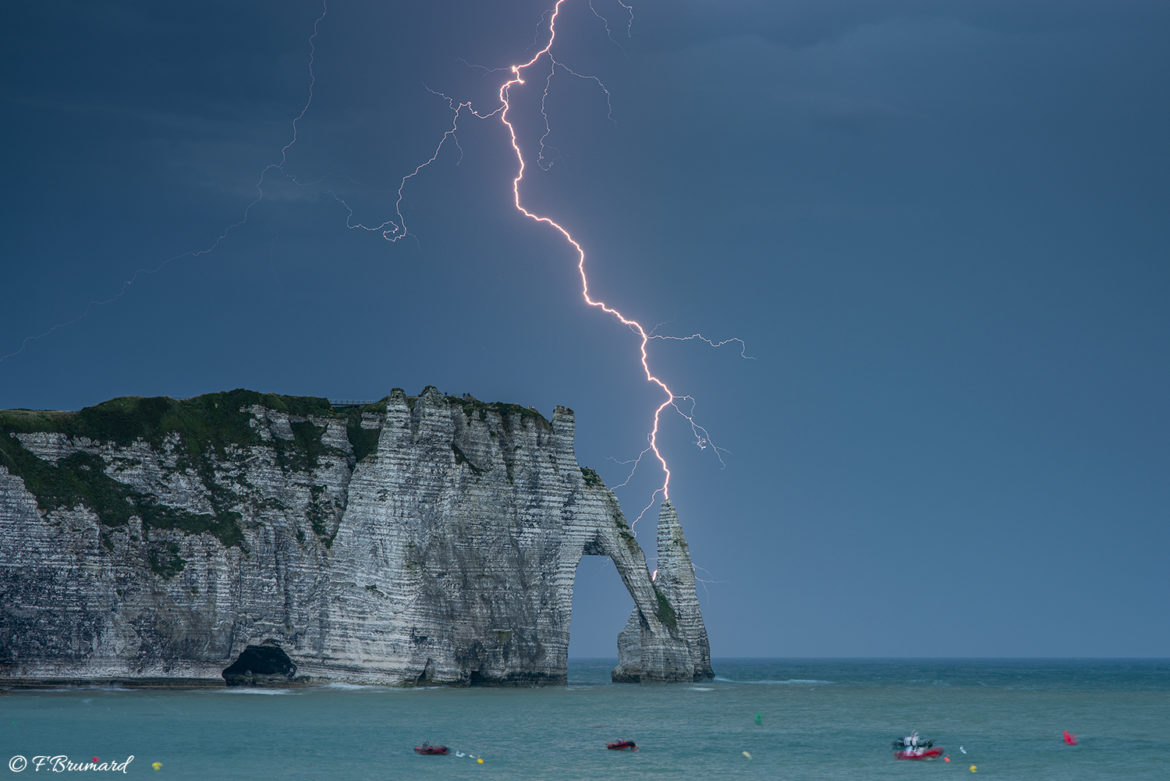 La plupart des chasseurs d’orages ont un « Graal », une quête qui leur est propre et qui guide souvent leurs inlassables sorties sous l’orage. Parfois, à force de persévérance et avec une bonne dose de chance, cette quête se transforme en accomplissement. C’est ce qui est arrivé à Fabien Brumard en ce 23 juillet 2021 devant les falaises d’Étretat.