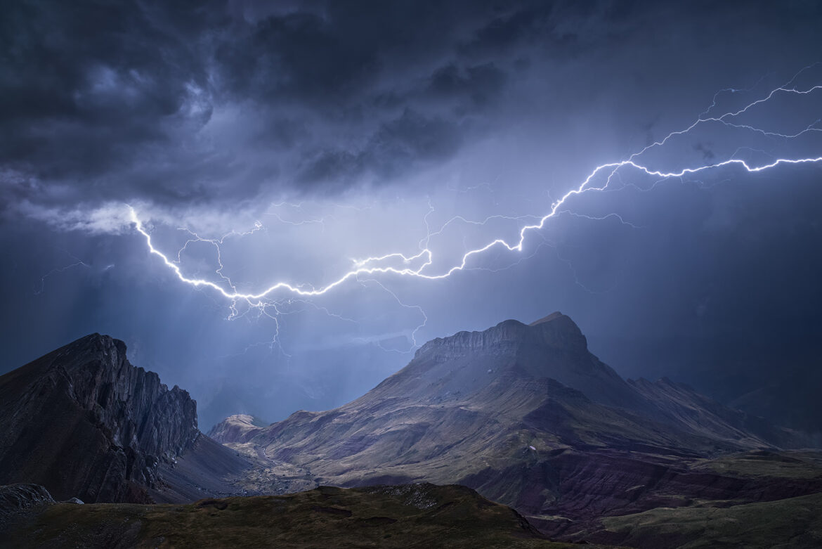 Tous les chasseurs d’orages photographient les éclairs en restant près de leur véhicule, parfois même en s’y abritant, dans les conditions délicates. Tous ? Non. Maxime Daviron, photographe et chasseur d’orages basé dans les Hautes-Pyrénées, est bien le seul à partir explorer les montagnes pyrénéennes à pied, par tous les temps, y compris sous l’orage. Cette quête particulière était déjà le fruit d’images singulières dans le paysage photographique. Aujourd’hui, l’aboutissement de ce travail donne naissance à Terres Perdues : un livre, mais aussi un album musical et un court-métrage.